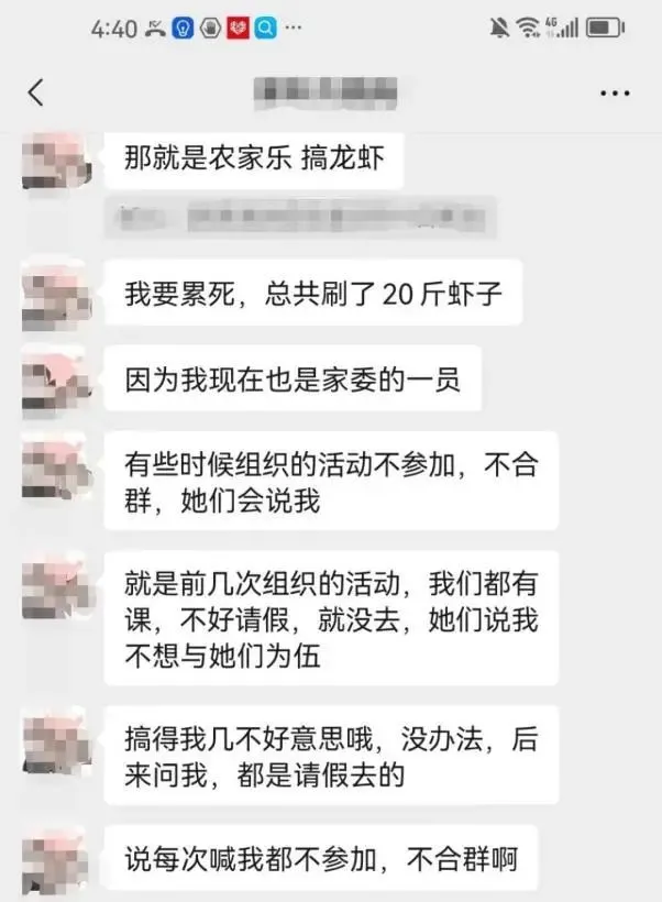 沈鹤妈妈告诉我,在家委会单独的七人群里,家委们对我意见很大。他们说每次都是我“挑事儿”,说我不出力,还“站着说话不腰疼”,又说我为孩子几百块钱买衣服的投资都舍不得。