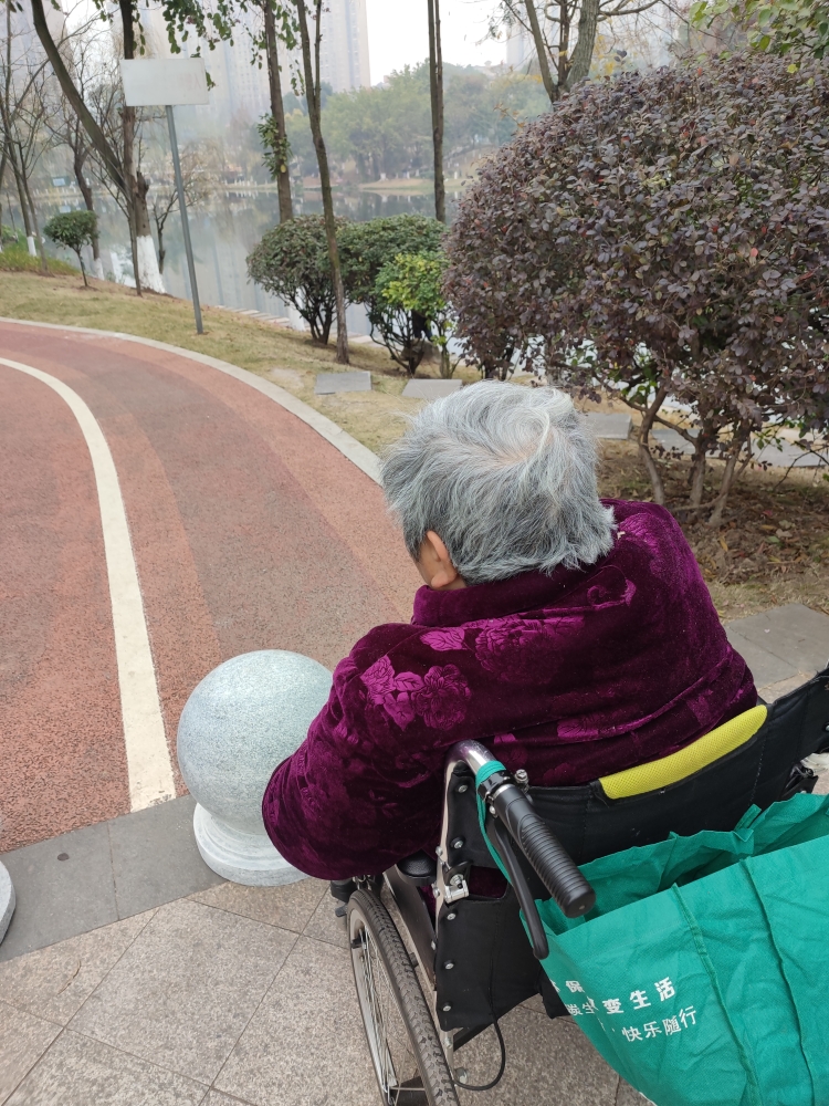 一个靠轮椅行走的人,到公园是个不错的选择。