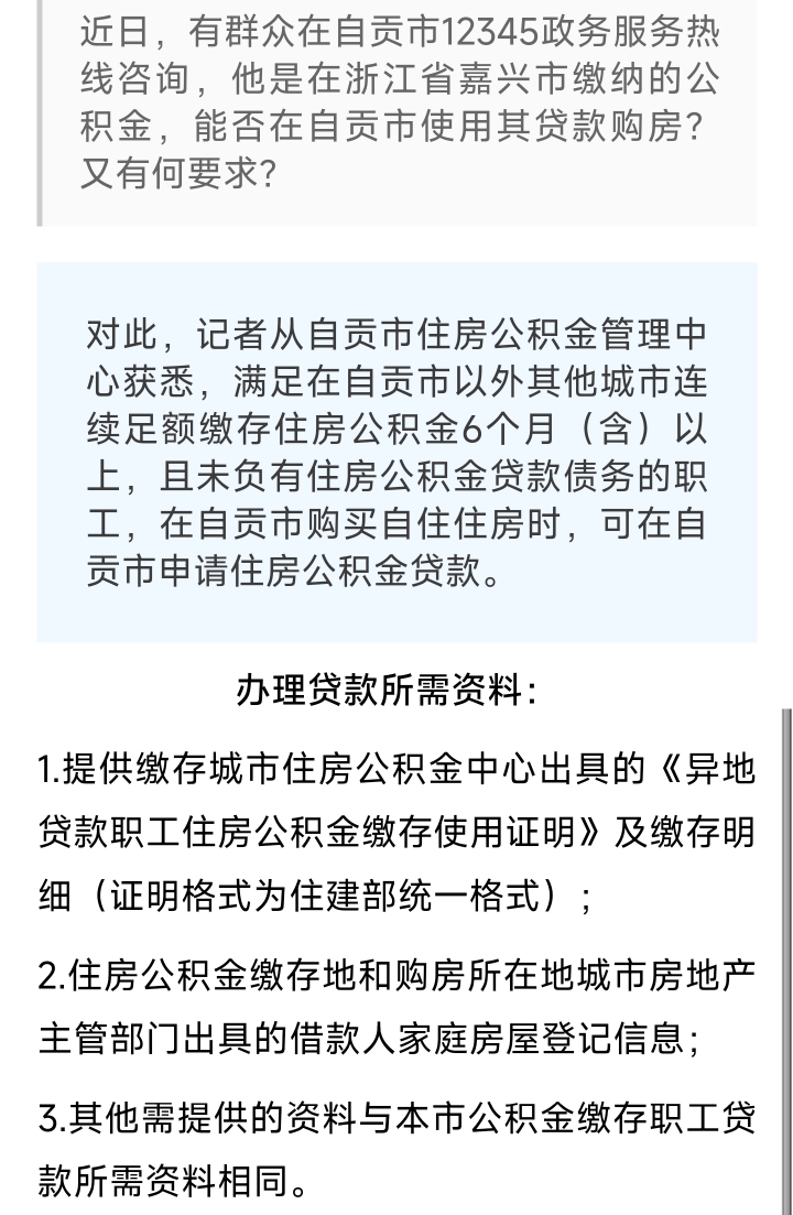 [盐都杂谈] 能使用异地缴纳的公积金在自贡贷款购房吗?