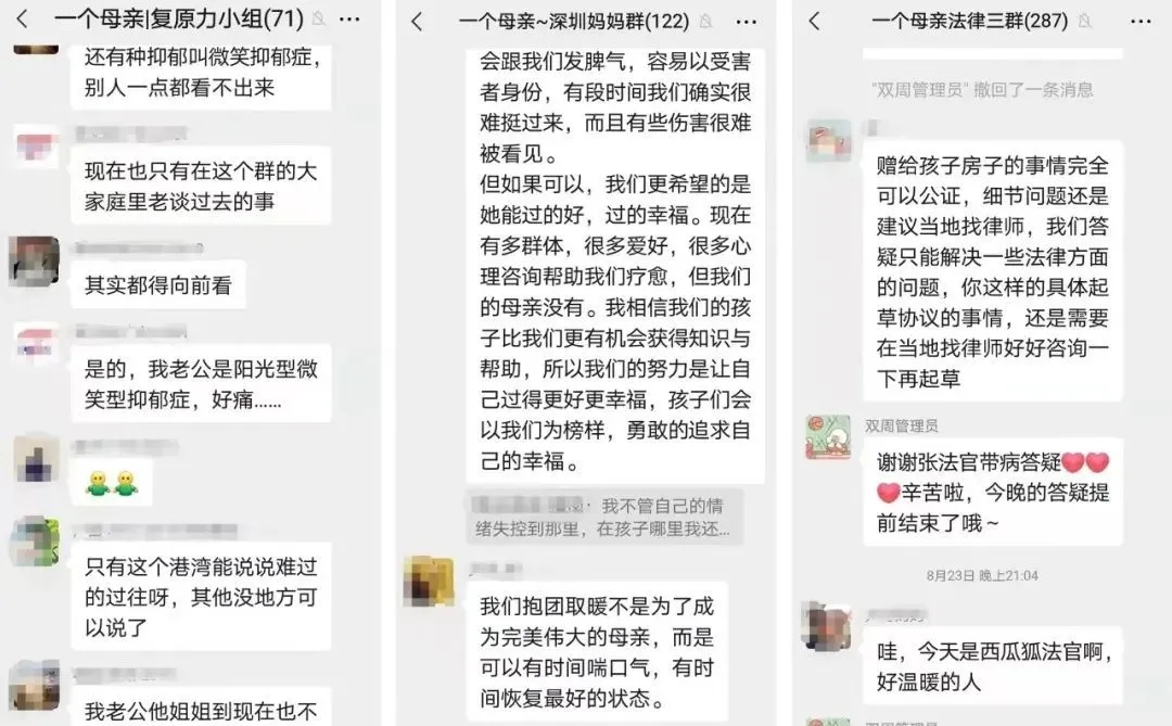 ▲“一个母亲”社群中的法律、心理等方面的答疑