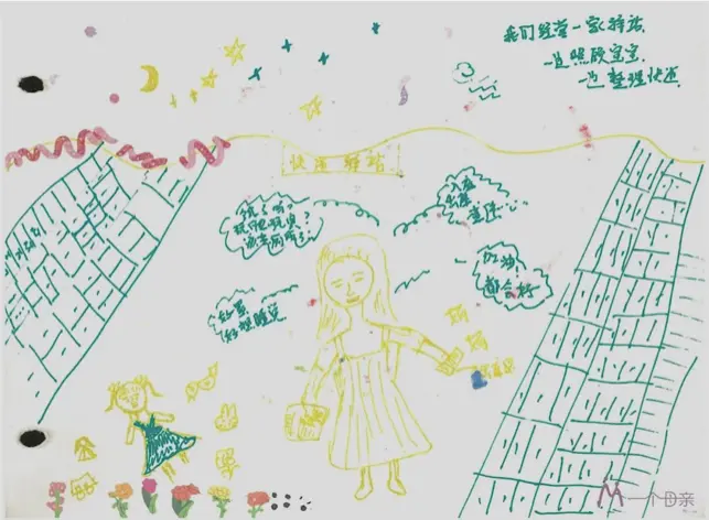▲米兰生日的时候,女儿送给她这幅画,“要送妈妈一幢漂亮的房子”