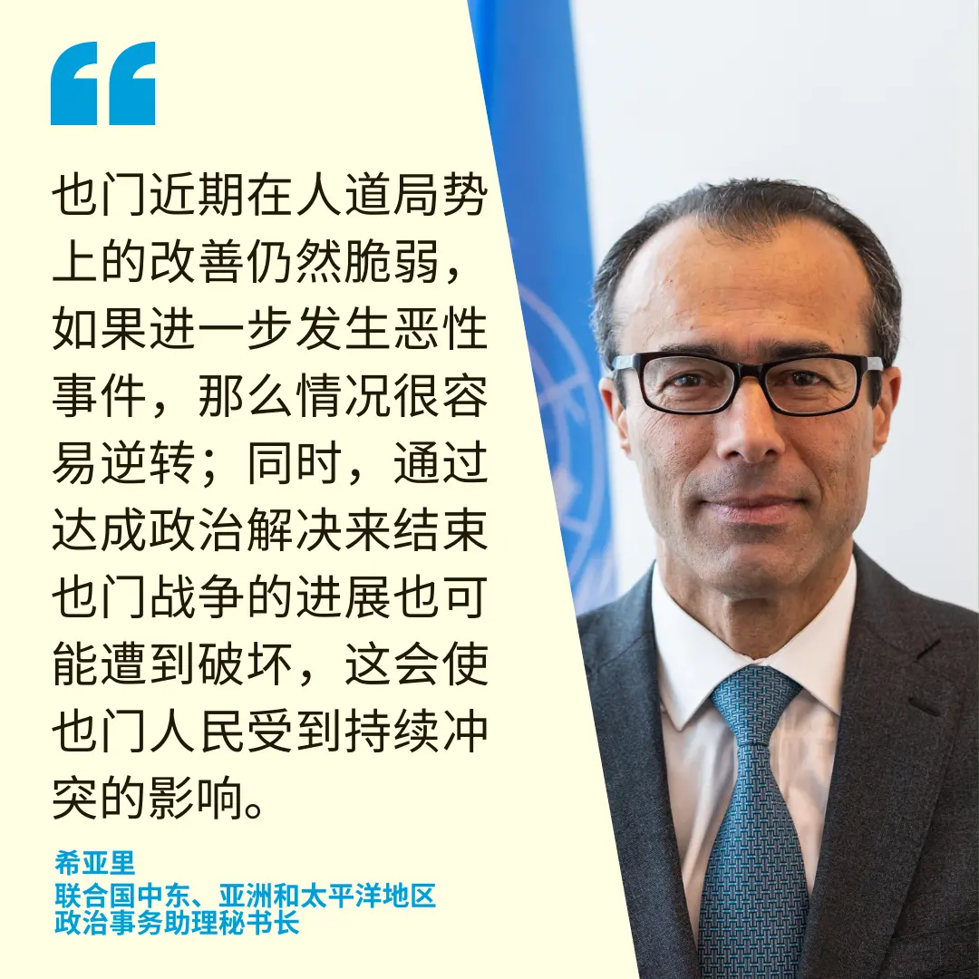 希亚里警告,红海的事态发展,以及地区紧张局势加剧的风险令人担忧。他表示,胡塞武装在安理会决议通过后发动的袭击,以及周四发生的事件进一步表明,该地区正处于局势升级的危险轨道之上,这可能会对也门、整个地区乃至全球许多人造成影响。 希亚里重申了秘书长古特雷斯的呼吁,希望相关各方不要让局势升级。他强调,各方还应尽最大努力缓和紧张局势,同时保持克制。
