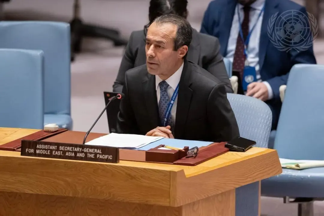 ©联合国图片/Manuel Elias|安理会就红海局势举行首场公开通报会。 联合国负责中东、亚洲和太平洋地区政治事务的助理秘书长希亚里(Khaled Khiari)在向安理会通报情况时表示,也门及红海区域的暴力循环可能造成严重的政治、安全、经济和人道主义后果,这不仅会对这个饱受战争蹂躏的贫困国家本身造成影响,还会波及更广泛的地区。
