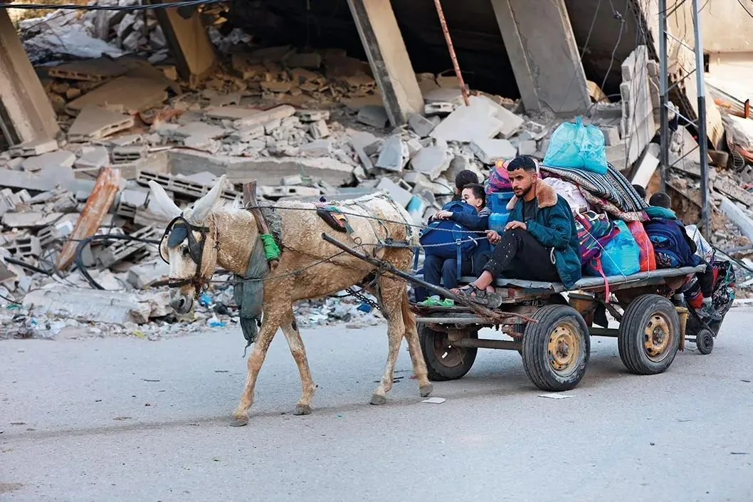 2023年12月22日,在加沙地带中部的布赖杰难民营,巴勒斯坦人在收到以军撤离要求后离开家园 新华社发