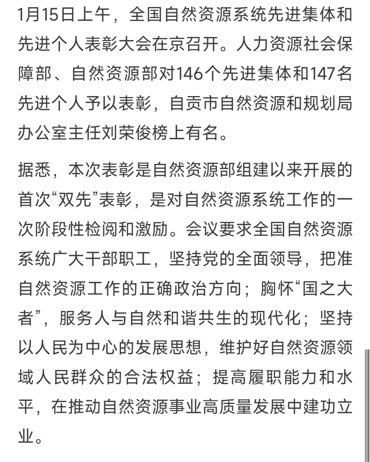 [盐都杂谈] 自贡市1名个人荣获全国自然资源系统“双先”表彰