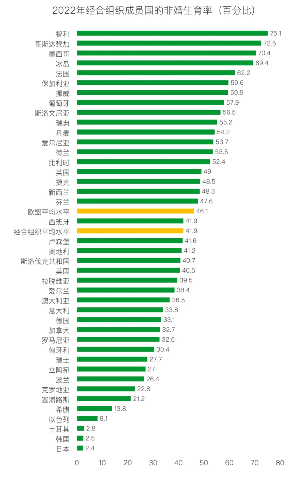 非婚生育在欧洲相当普遍,部分原因是这些国家的政府给孩子提供福利和教育补贴,也不歧视单身母亲,使得单身女性也更容易抚养孩子。这在一定程度上促成了这些国家的高生育率。一方面,我国需要提高结婚率,也有必要改变文化观念,要更加宽容地对待非婚生育。包括立法保护人工授精、试管婴儿等技术辅助生殖的孩子,无条件为非婚生育的孩子上户口。让有能力和意愿去独立抚养小孩的女性,公平地享受生育的权利和福利。