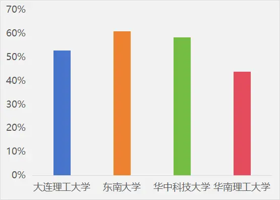 但华南理工大学这个数字竟然只有43.83%,相比上面这两所大学低了二三十个百分点。