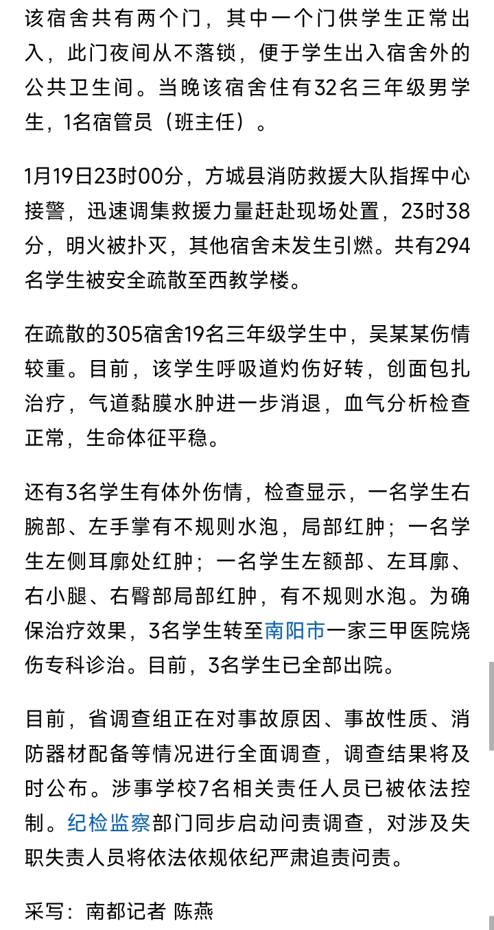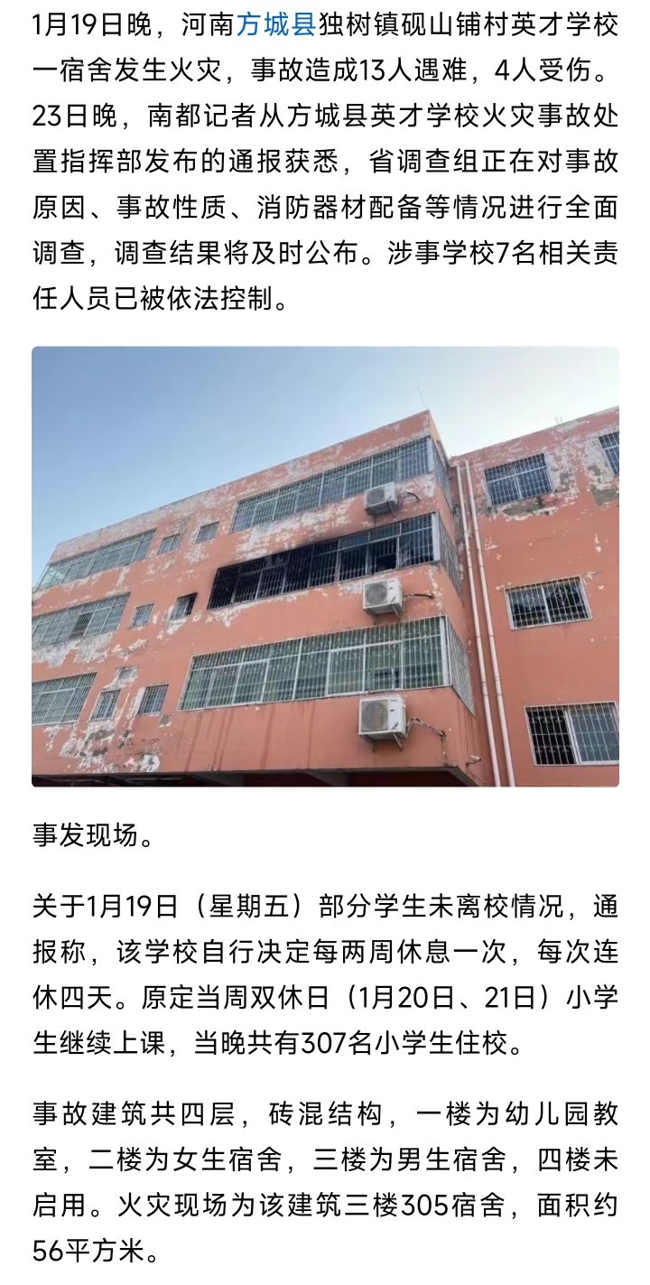 [盐都杂谈] 河南方城通报宿舍起火致13死详情