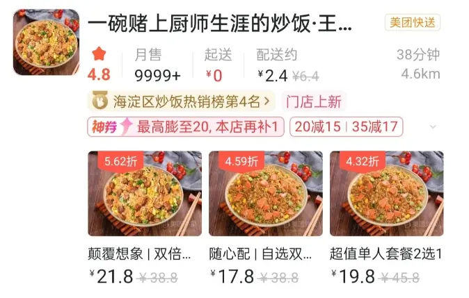 在全国不少城市的热门商圈,点外卖基本都能搜到“赌上厨师生涯的炒饭”的这家店。仿佛一场大厨集体自证事件,比中华小当家的信念还要深刻。