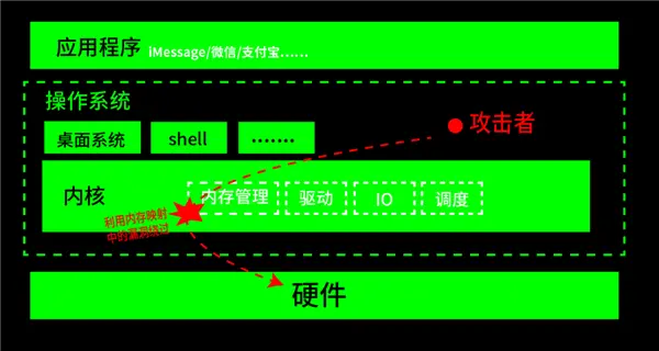 既然攻击者的目标是 iOS 系统内核,那为啥要费这么大劲儿绕过它,而去管那么远的硬件内存的事情呢?