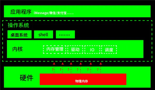 我们平时接触到的 iMessage 、微信这些应用程序,并不会直接操作实际的芯片上的物理内存。