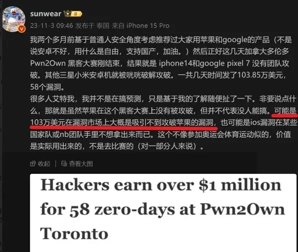 大家可能不知道 iPhone 的一个零日漏洞有多值钱 —— 去年的 Pwn2Own 大会拿一百万美元都没钓出来苹果的 0day。
