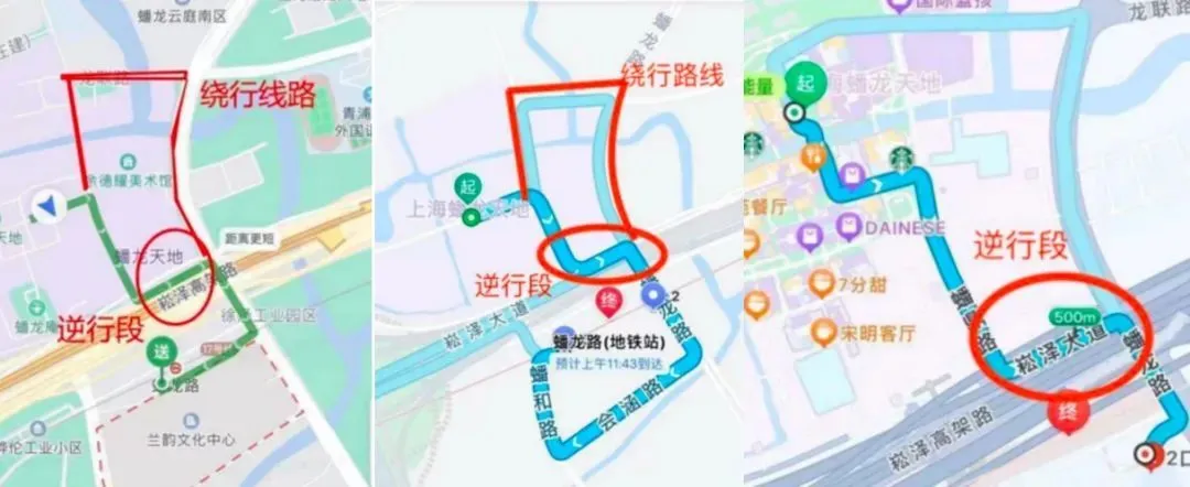 这一设计原本能在智能规避拥堵、施工等情况下大展身手,但往往在骑行导航中,给骑行者、交管部门带来困扰。甚至很多时候包含“逆行”路段的规划路线,要比实际上的合规路线要更加绕远。导航在被“误导”后,反过来误导了更多不明真相的用户。