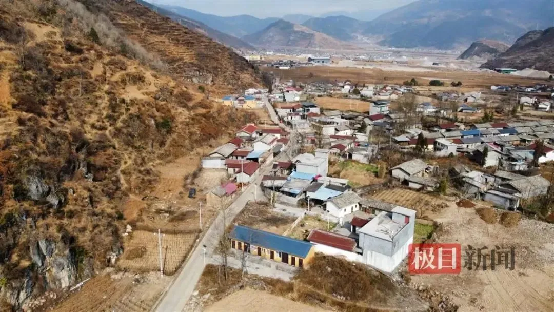 2024年1月25日,记者来到大山之间的桃园村,房屋星罗棋布,一条水泥路贯穿桃园村,一捆捆干枯的烟草梗整齐码放在田间地头。远处山顶的积雪尚未融化,温暖的阳光洒下,巴木玉布木家门口传来孩子们的打闹嬉笑声。