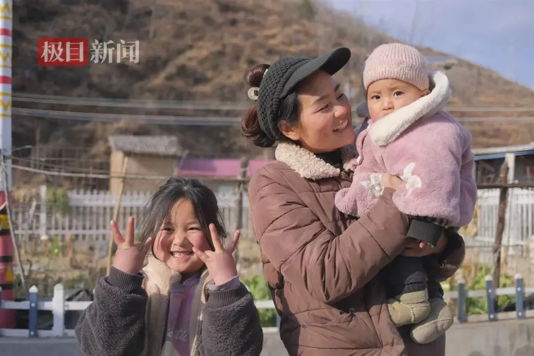 傍晚,巴木玉布木抱着不满一岁的老五在阳光下散步,孩子们总是喜欢围着妈妈转,一片欢声笑语。婴孩帽子上绣着“岁岁平安”,这也是巴木玉布木一家的心愿。