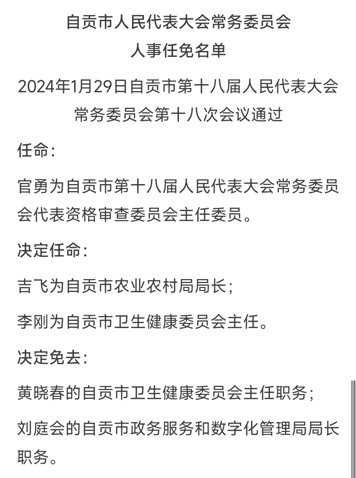 [盐都杂谈] 自贡市人民代表大会常务委员会人事任免名单