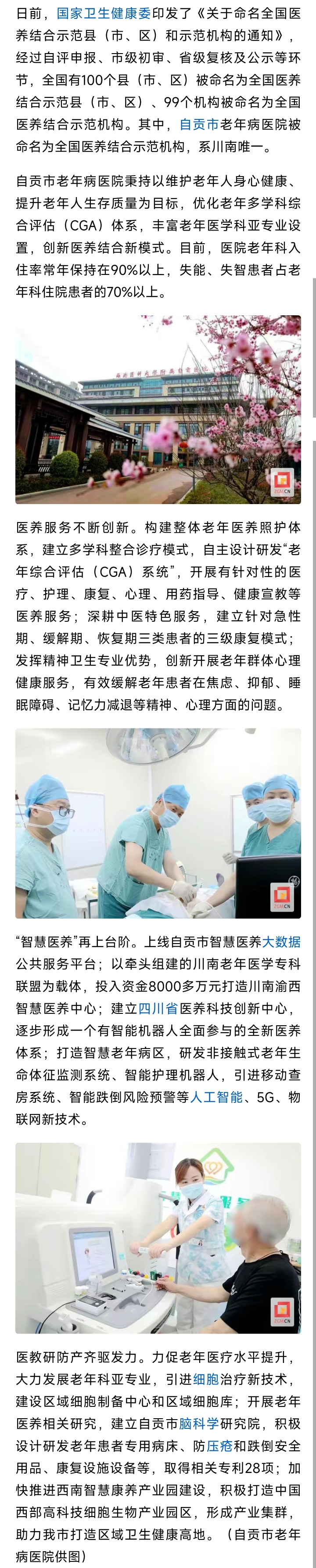 [盐都杂谈] 川南唯一!自贡市老年病医院被命名为全国医养结合示范机构