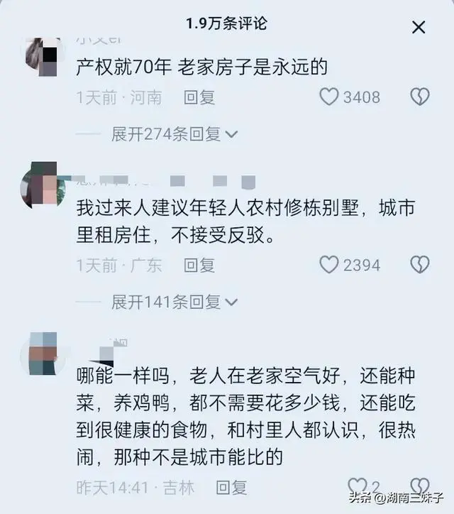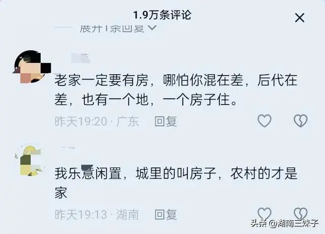 有网友说:“城里的房就是商品,农村的房才是家!”