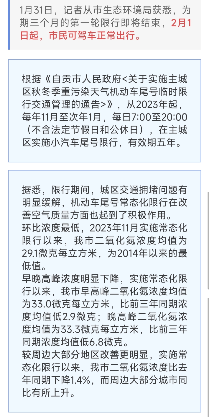 [盐都杂谈] 今晚12时,自贡第一轮秋冬常态化限行结束