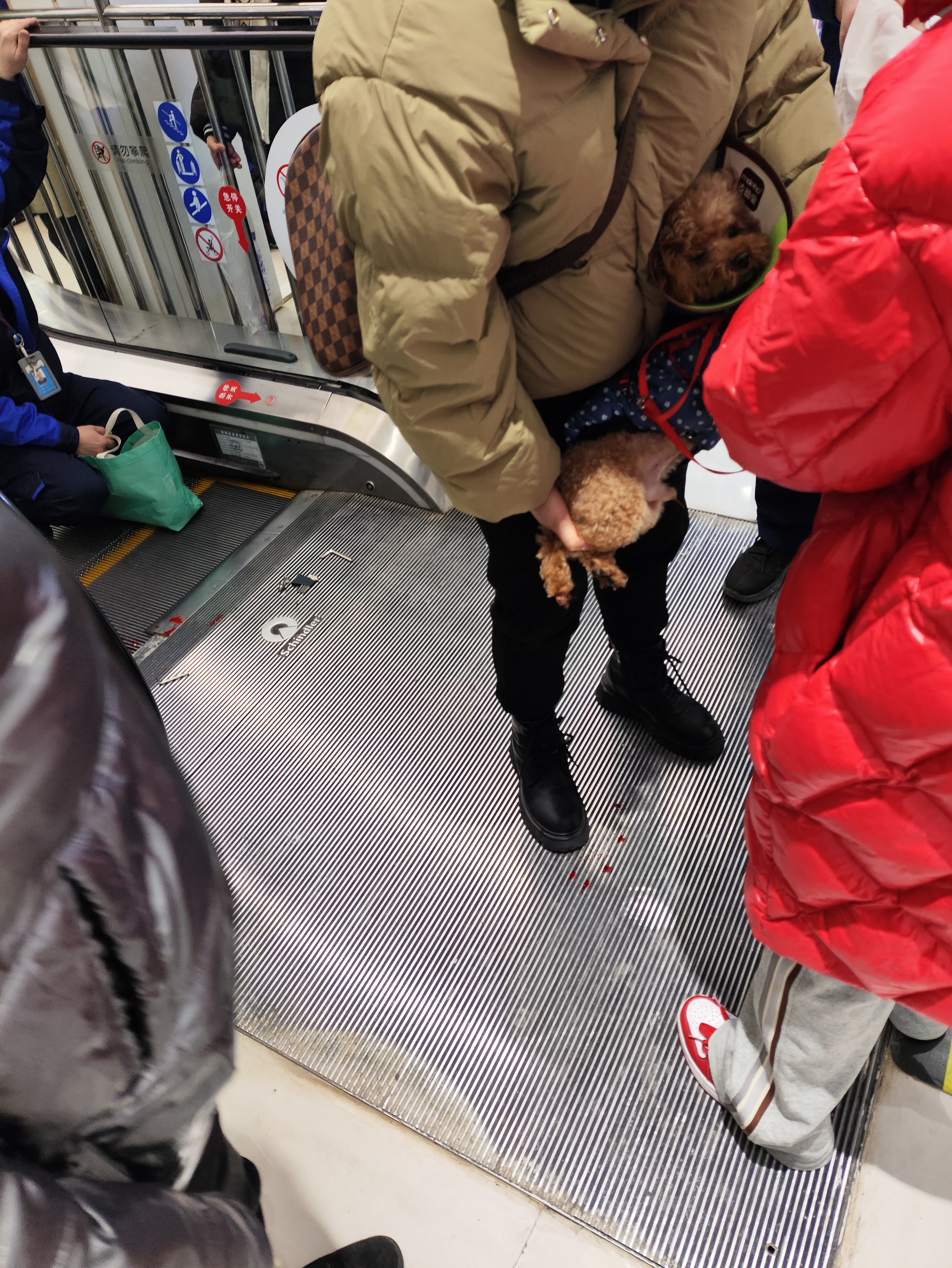 华商爱琴海,电梯卡到狗儿的小爪爪,带宠物的朋友一定要注意安全……