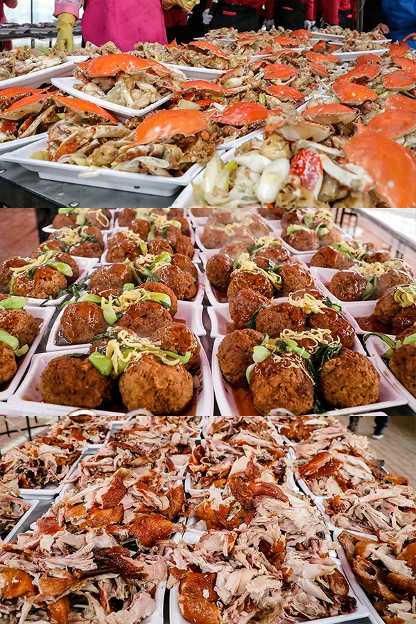 西南沿海一带,尤其是闽南、浙南、广东潮汕等地区,格外重视宗族和礼仪,不仅菜式丰富而且大席办得更是格外频繁,升学、乔迁、大寿、祭祖、拜神,尤其是在年底,一个村里不是在准备大席,就是在办大席。如此高的频率,甚至还有东南沿海人炫耀:每次大席上,最快被吃光的总是下面的粉丝,因为龙虾真的吃够了。