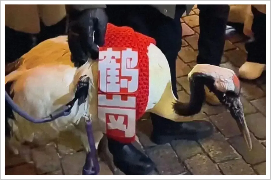 鹤岗唯一的丹顶鹤,“出差”到哈尔滨,站立在中央大街上让游客们“免费撸”;