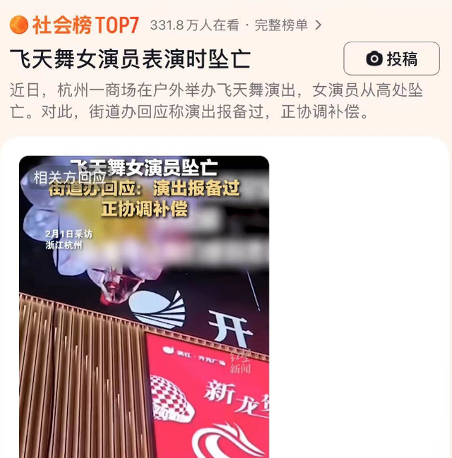 春节临近,一场意外事故的发生牵动了不少网友的心绪,事故发生于浙江杭州开元广场举办的一场表演中,飞天舞女演员表演时意外坠亡,爆料说年龄只有28岁。