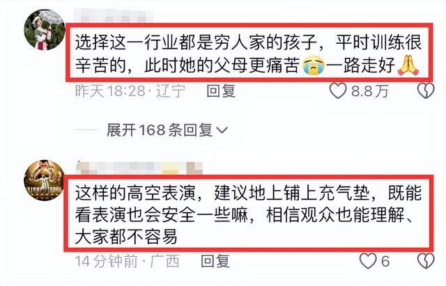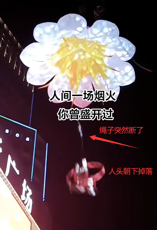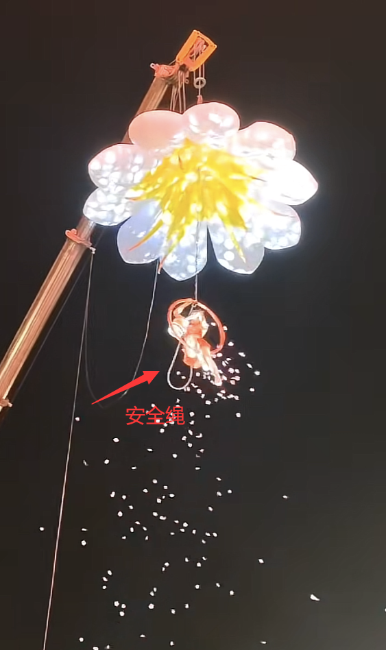 另外有细心网友发现,女演员身上是系着安全绳的,但是她安全绳系在了圈子上,而圈子上面的主绳断了,这才导致她在表演过程中突然从高空跌落,狠狠摔了下来。