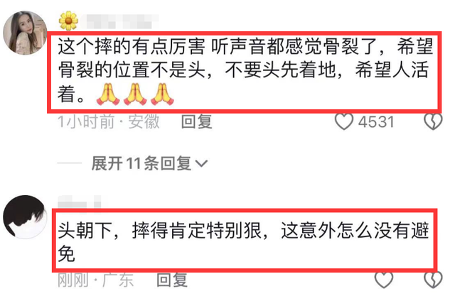 这起事故自然也引起更多网友热议,随之也有更多现场视频一一曝光,有目击者还分享出女演员坠落之后被当场抢救的现场画面。