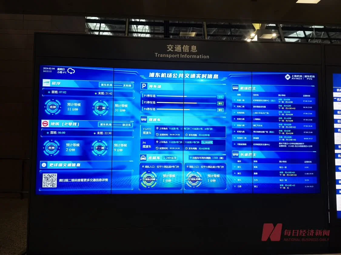 浦东机场对旅客展示的公共交通实时信息显示,下午2时,浦东机场的可用出租车数量为1388辆;下午4时,出租车等候数增至1517辆;18时,该数字降至1109辆;晚上8时开始,进入用车高峰期,浦东机场的出租车数量为987辆;直到晚间9时,回升至1071辆。