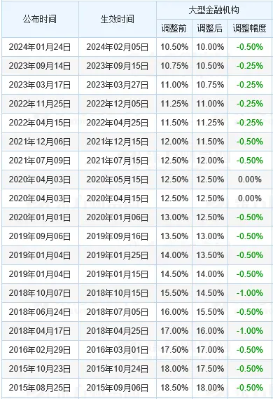 据央行此前公告,自2024年2月5日起,下调金融机构存款准备金率0.5个百分点(不含已执行5%存款准备金率的金融机构),本次下调后,金融机构加权平均存款准备金率约为7.0%。此次降准将向市场提供长期流动性约1万亿元。