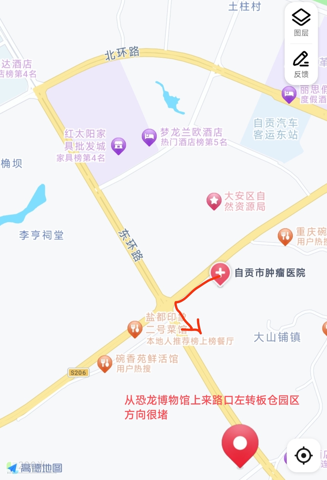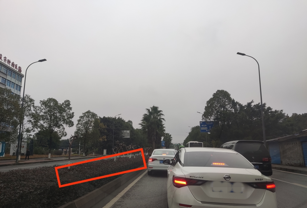 另外在说说从牛佛回来到下图标识的这个路口左转,时间很短需要等好几轮红绿灯,并且每次根本过不了几个车,花台明显可以在扩一根左转车道出来,让左转2车道排车这样的通行会不会更好呢?