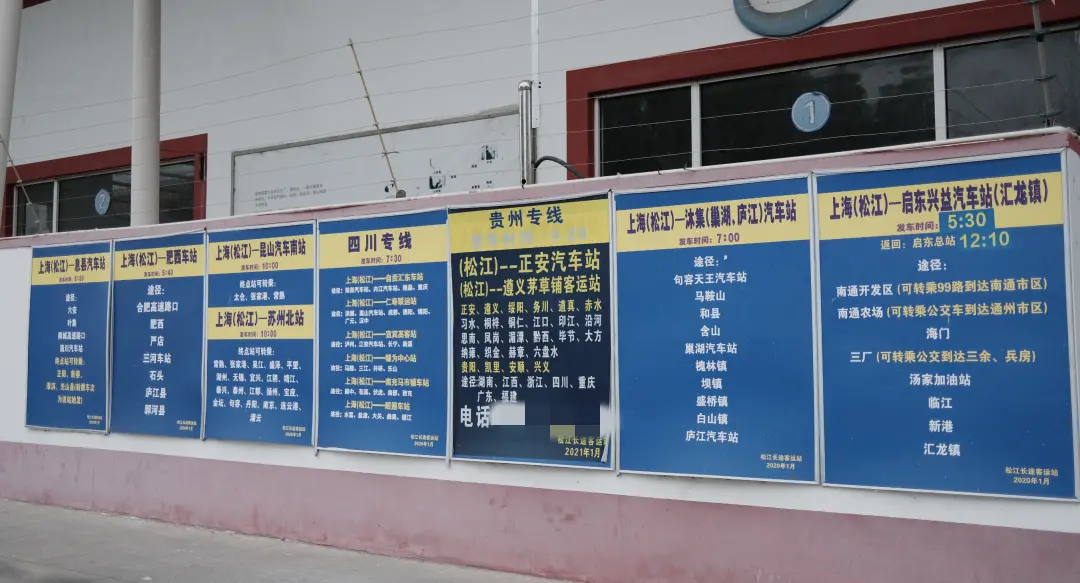 墙上贴着的纸,标示出每一辆大巴的起止点,以及途径的站点。