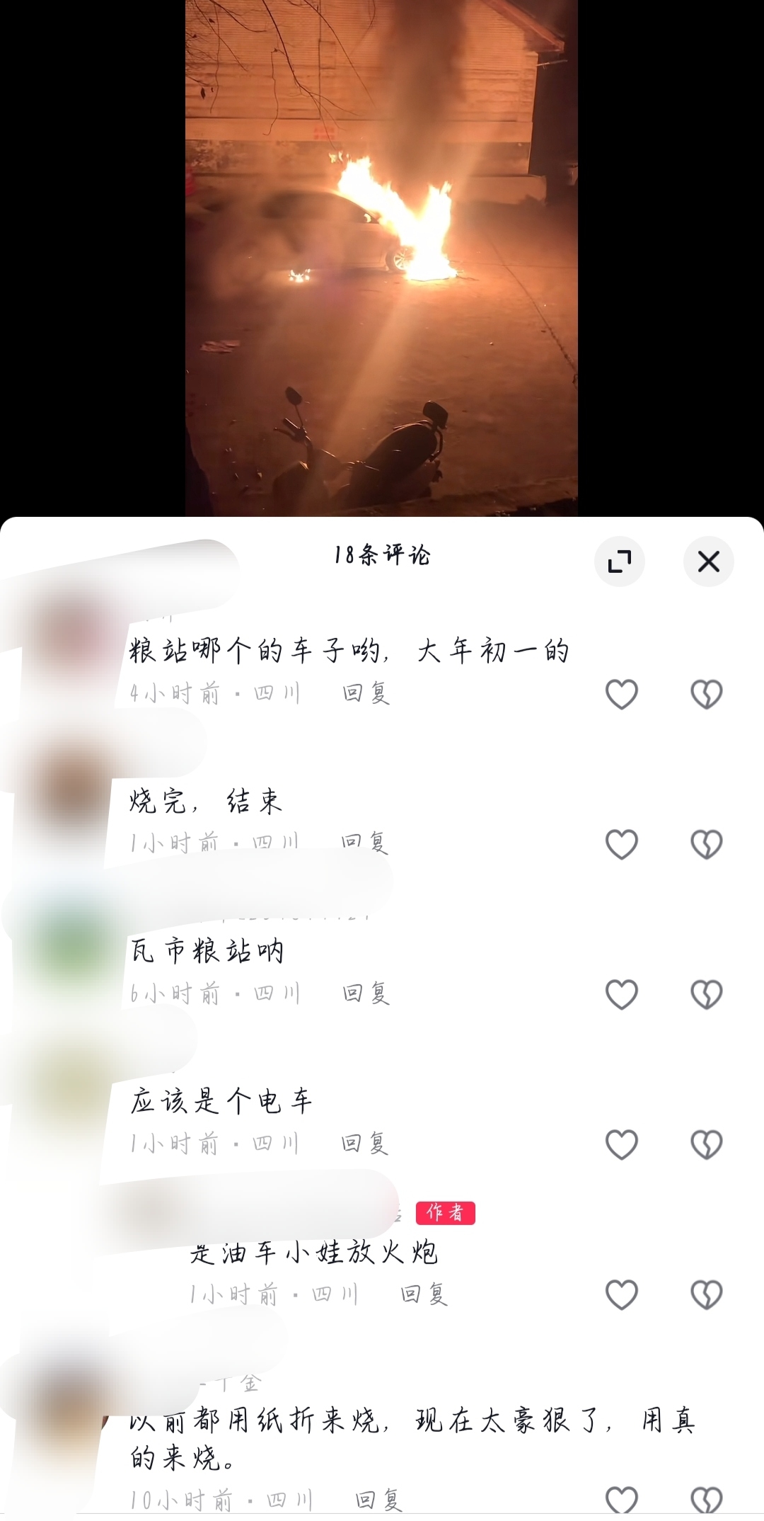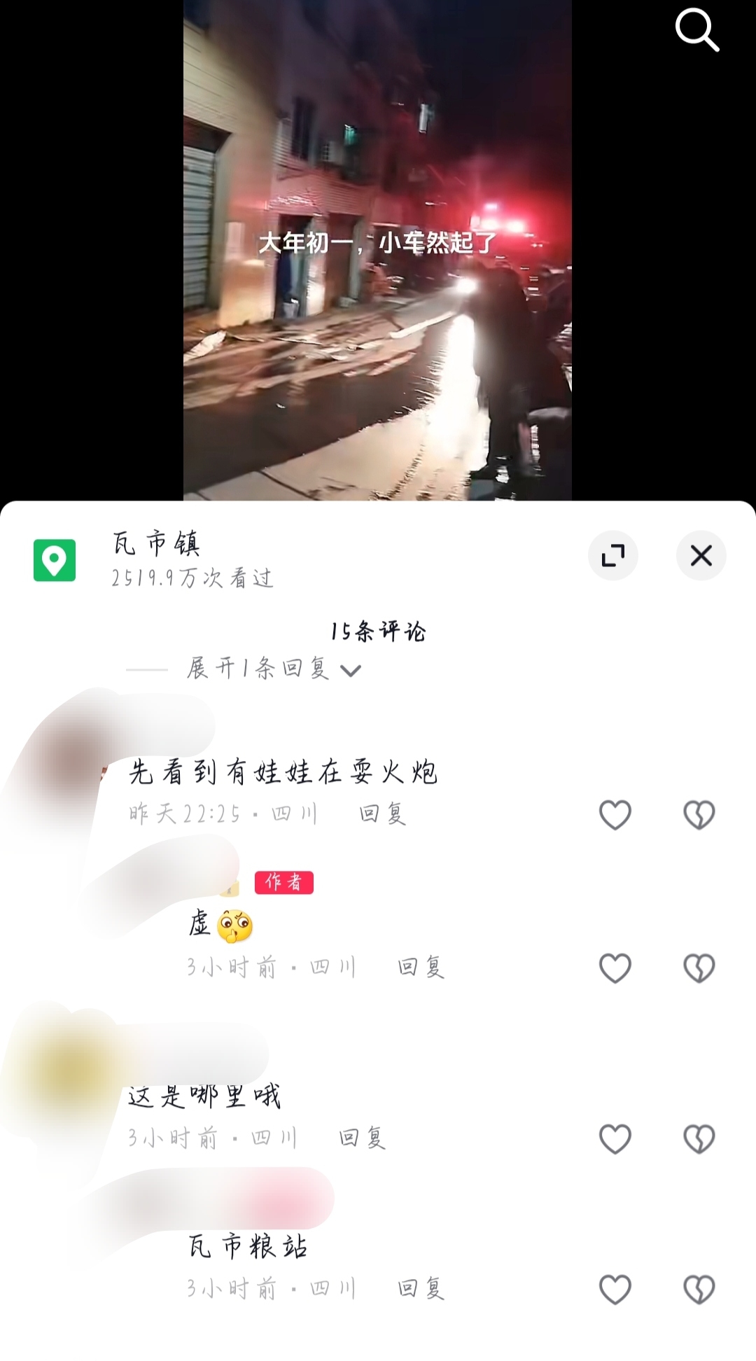 小朋友放火炮把别个的车弄燃啊