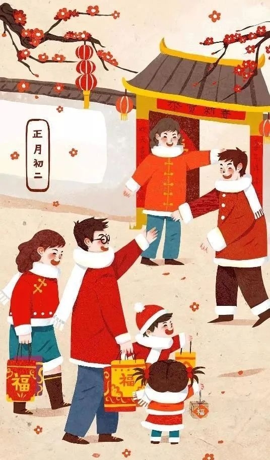 女婿带上夫人给岳父岳母拜年,叙叙旧,话话家常,老少团圆,其乐融融。