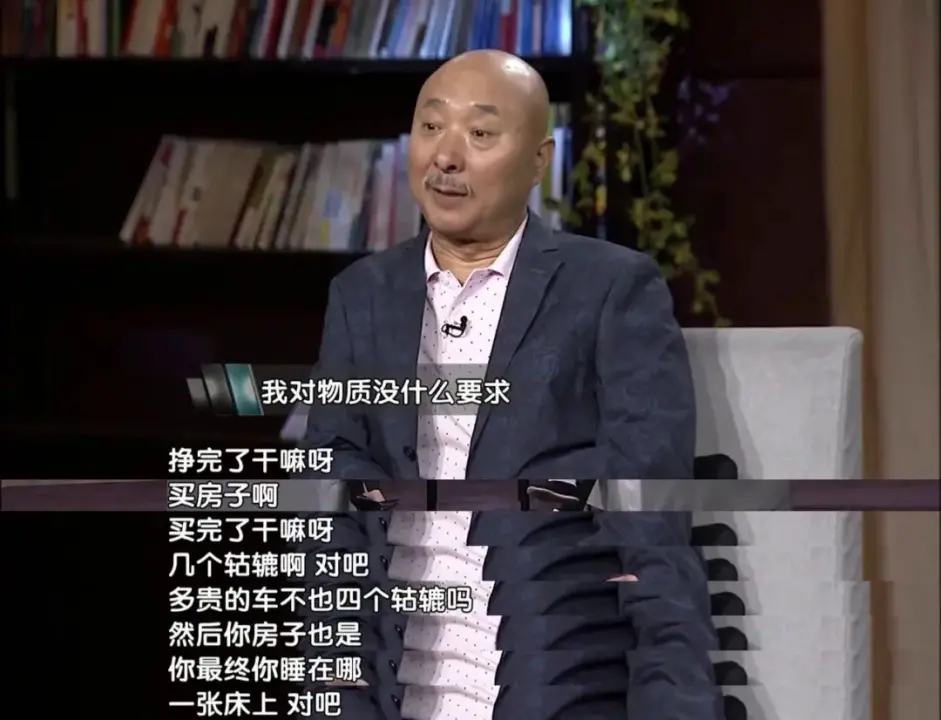 如他所说:“我对物质没那么高要求,挣那么多钱干嘛呀?多贵的车不还是四个轱辘。多少个房子不是也只能睡一张床。”