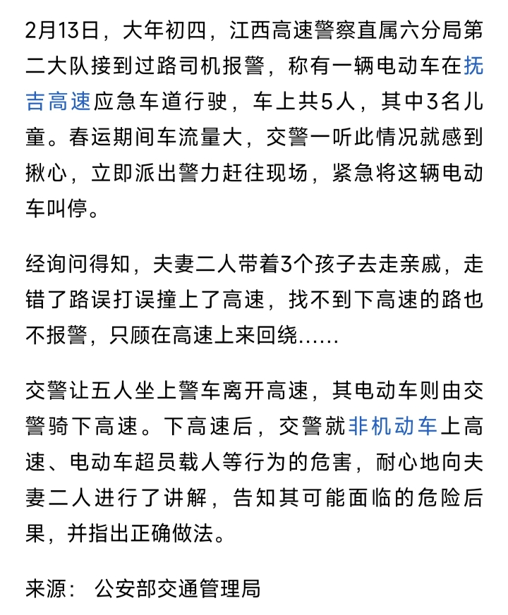 [盐都杂谈] 1家5口骑电动车上了高速 把交警急坏了