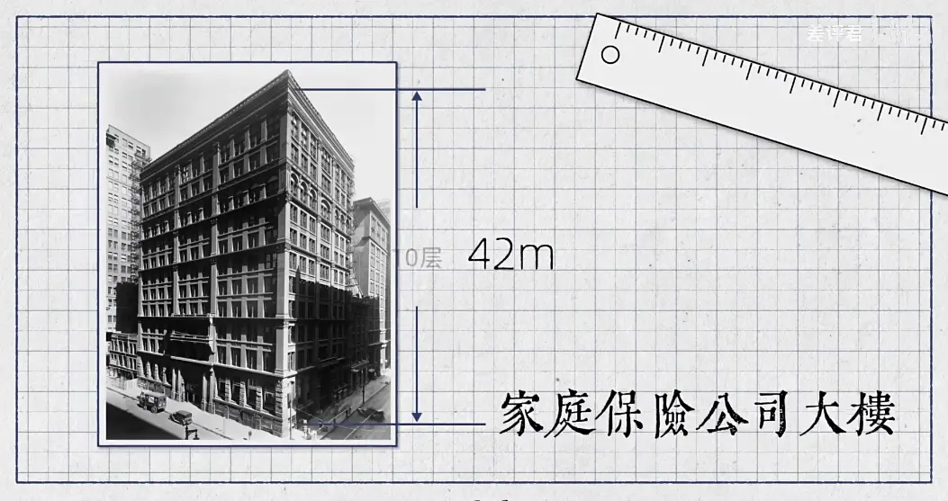 世界上第一座摩天大楼诞生在芝加哥,就是这栋家庭保险公司大楼,虽然这栋大楼只有 10 层,42 米高,但却是当年最高的建筑之一,也是第一个用钢结构建造的大楼,它只有同体积石质建筑的三分之一重量。