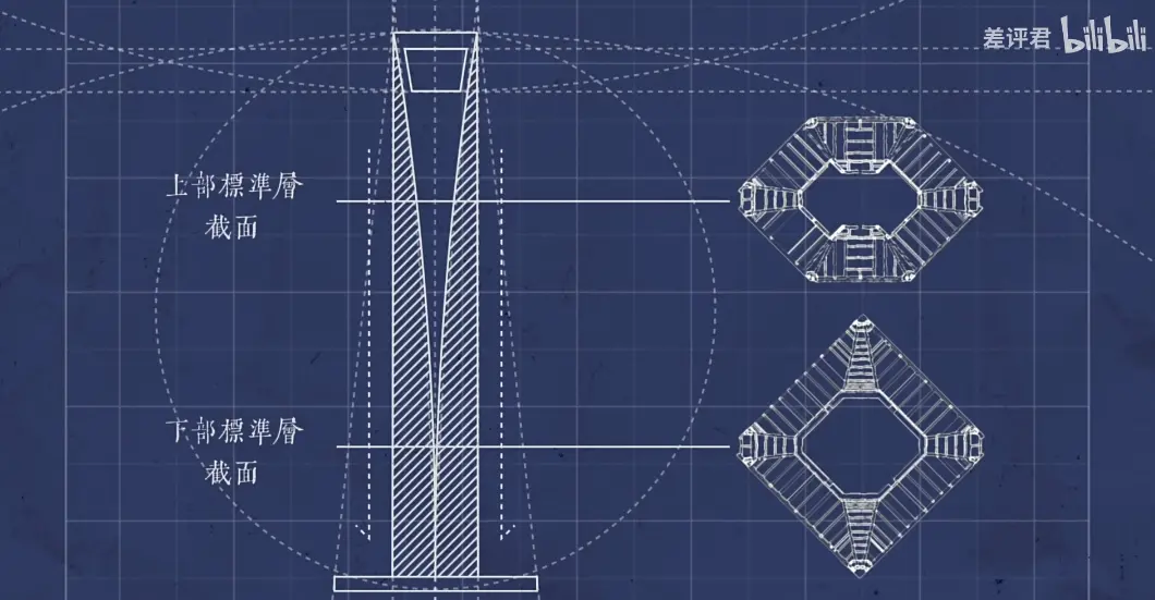 而除了在结构上解决了水平荷载以外,还有一个垂直荷载需要解决,也就是在重力作用下,楼体如何承受自身重量。