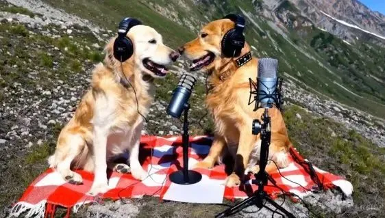 两只金毛犬在山顶上录制播客,会是一个怎样的场景?