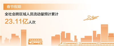 本报北京2月17日电 2024年综合运输春运工作专班统计数据显示:春节假期(2月10日至17日),全社会跨区域人员流动量预计累计23.11亿人次。