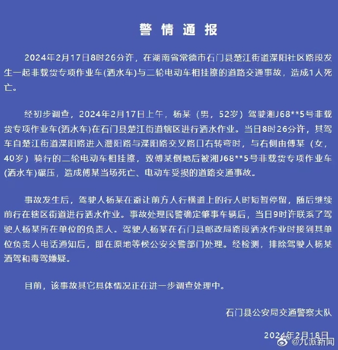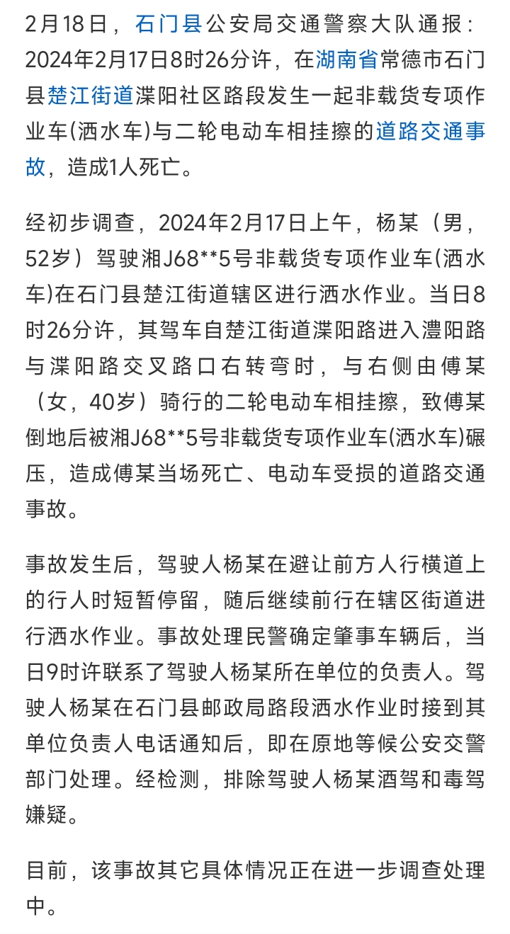 警方通报!洒水车作业时碾压路人致死