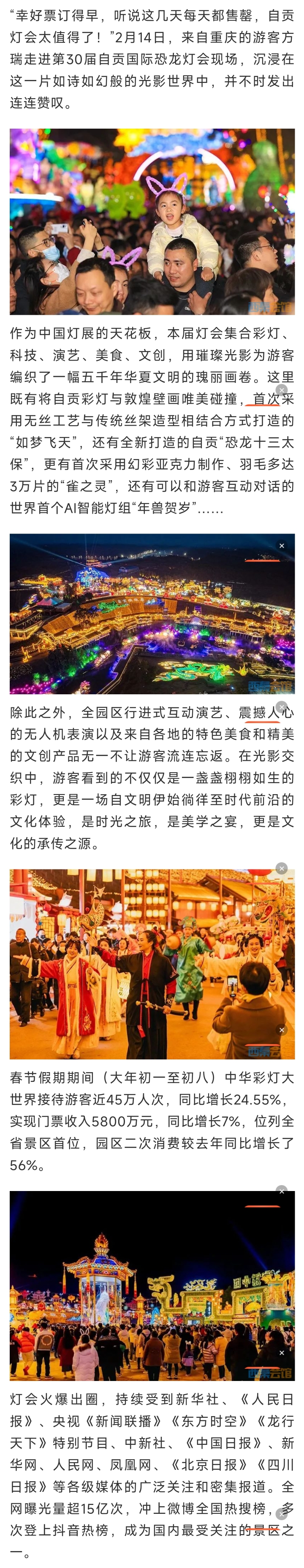 [盐都杂谈] 春节假期 自贡灯会接待游客45万人次 实现门票收入5800万元 居全省景区之首