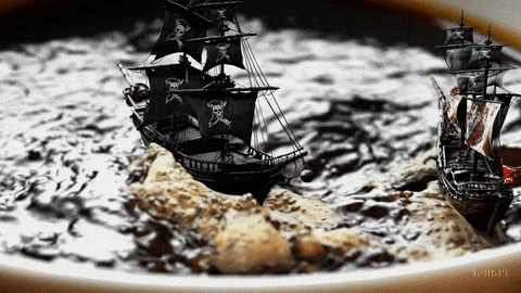 Sora生成的视频图像:一杯咖啡中,两艘海盗船展开了“战斗” 图源:OpenAI官网