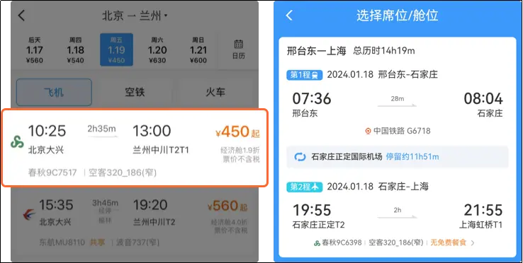 继东航、国航、南航后,铁路12306App近期与春秋航空股份有限公司联手共同打造了以石家庄为换乘枢纽的空铁联运网络,新增可售航线200余条,支持北京、衡水、保定、邢台、邯郸等经石家庄前往春秋航空国内各通航城市的双向空铁联运销售,为旅客提供更丰富的机票产品选择。 购票步骤