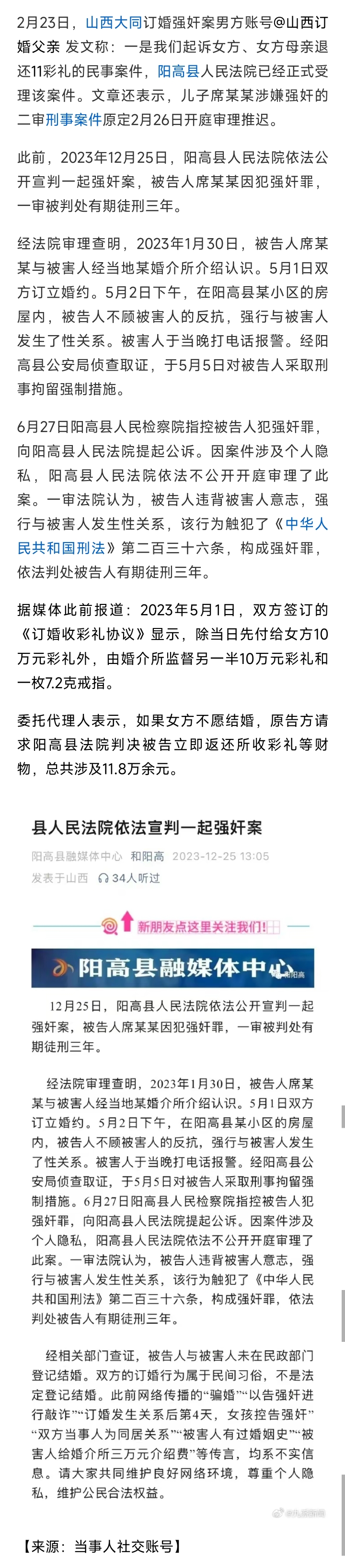 [盐都杂谈] 订婚强奸案男方称二审推迟