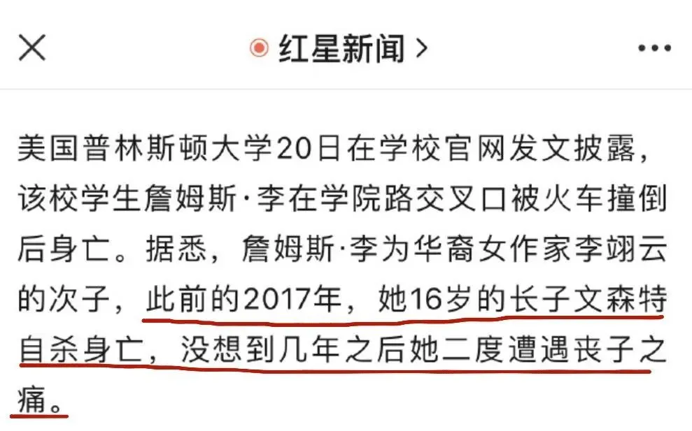 2017年,李翊云16岁的大儿子,也死于自杀。