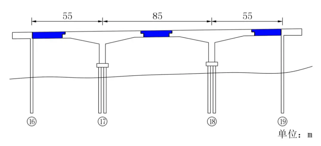 因此主跨的85米实际上是由30+25+30的三组梁段组成的,次跨的55米是由30+25的两组梁段组成的。