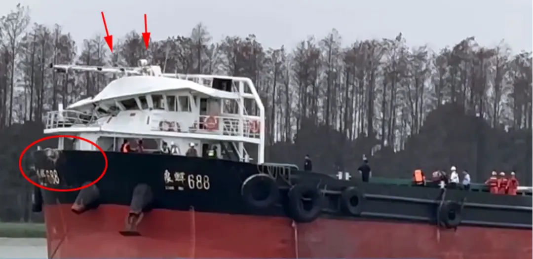 但要把直径1.8米的柱子撞歪,甚至撞歪几米,还需要恰巧的受力碰撞点。 不幸的是,这次事故就满足了这一点。由于“良辉688”是空载,吃水浅干舷高,船艏外檐也就是碰撞点高出水面7米左右。