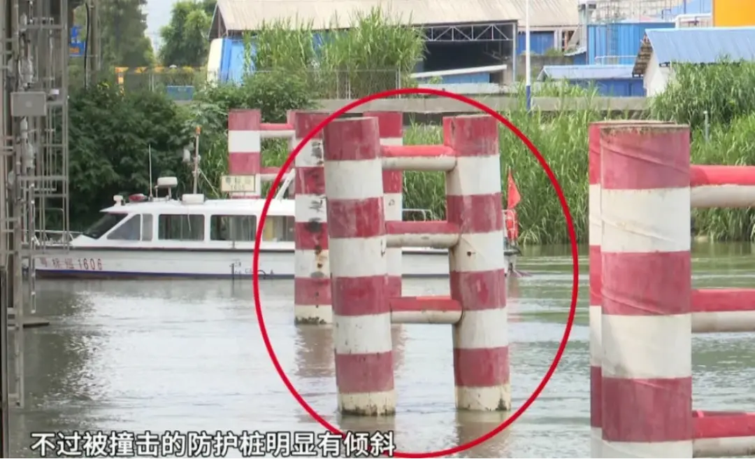 ▎ 撞击后次通航孔的红绿指示灯依然亮着,从万顷沙向沥心沙供水的管道被撞断。